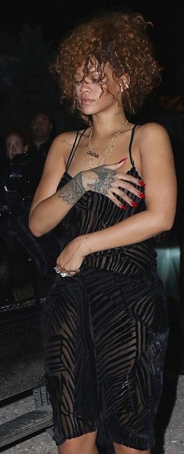 Këngëtarja nga ishujt Barbados Rihanna është shfaqur pa të brendshme dhe me një fustan transparent, ndërkohë që ishte drejtuar drejt një lokali nate.