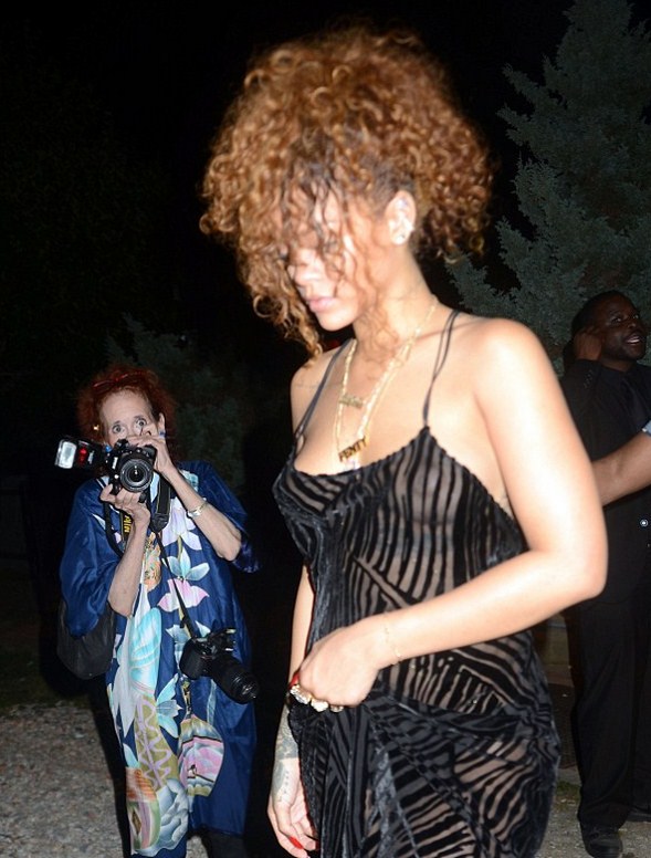 Këngëtarja nga ishujt Barbados Rihanna është shfaqur pa të brendshme dhe me një fustan transparent, ndërkohë që ishte drejtuar drejt një lokali nate.