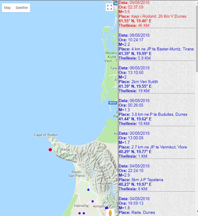 Shqipëria është goditur këtë të enjte nga një tërmet me magnitudë të dobët pranë Kepit të Rodonit.