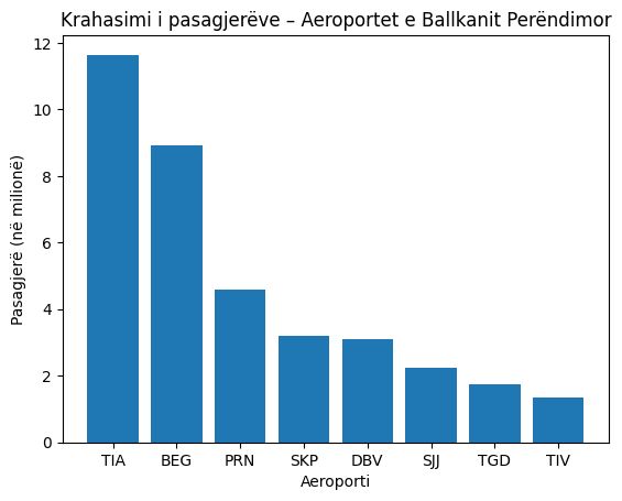 Në fund të renditjes, Podgorica (TGD) rezulton i vetmi aeroport me rënie, duke shënuar 1,752,077 pasagjerë dhe një tkurrje prej -0.3%, ndërsa Tivati (TIV) mbyll listën me 1,343,265 pasagjerë, por me një rritje të ndjeshme prej 19.5%, e mbështetur kryesisht nga sezonaliteti turistik.