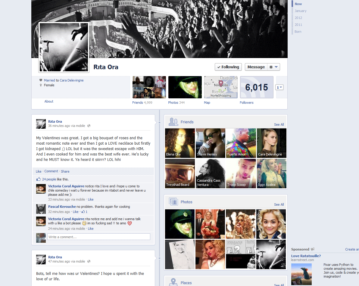 Në faqen e saj zyrtare në Facebook ajo ka publikuar një status në të cilin thuhej se kishte kaluar një Shën Valentin të mrekullueshëm.