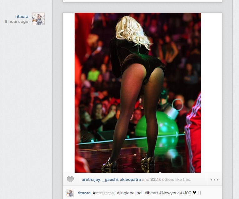 Vetë Rita ka publikuar një foto në profilin e saj në Instagram ku ekspozon të pasmet e saj gjatë këtij koncerti festiv.