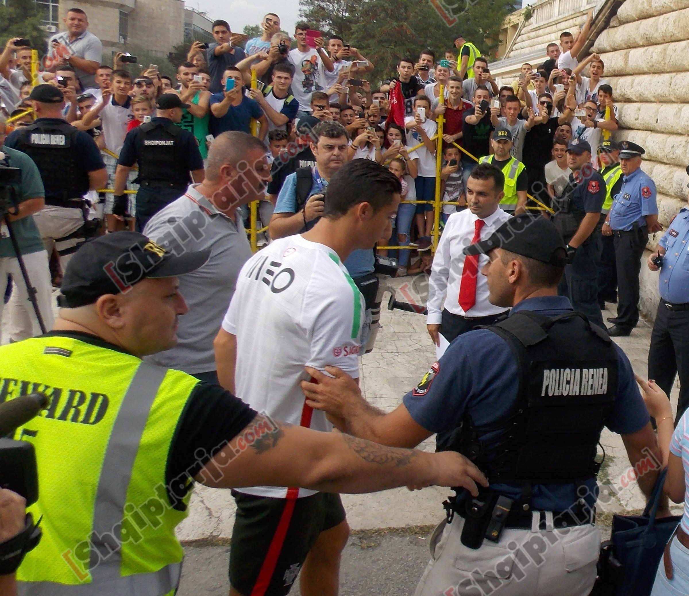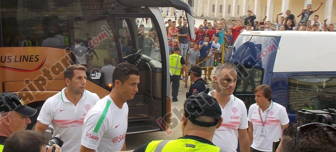 Dhjetëra të rinj kanë pritur ardhjen e ekipit portugez në stadiumin “Qemal Stafa” për të kryer stërvitje në prag të ndeshjes për eliminatorët e Euro 2016. Arsyeja ishte prania e Kristiano Ronaldos.