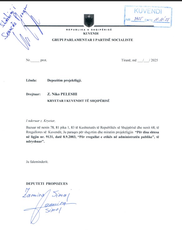 Nisma është propozuar nga deputetja socialiste Zamira Sinaj dhe synon të rrisë transparencën dhe të shmangien e konfliktit të interesit.