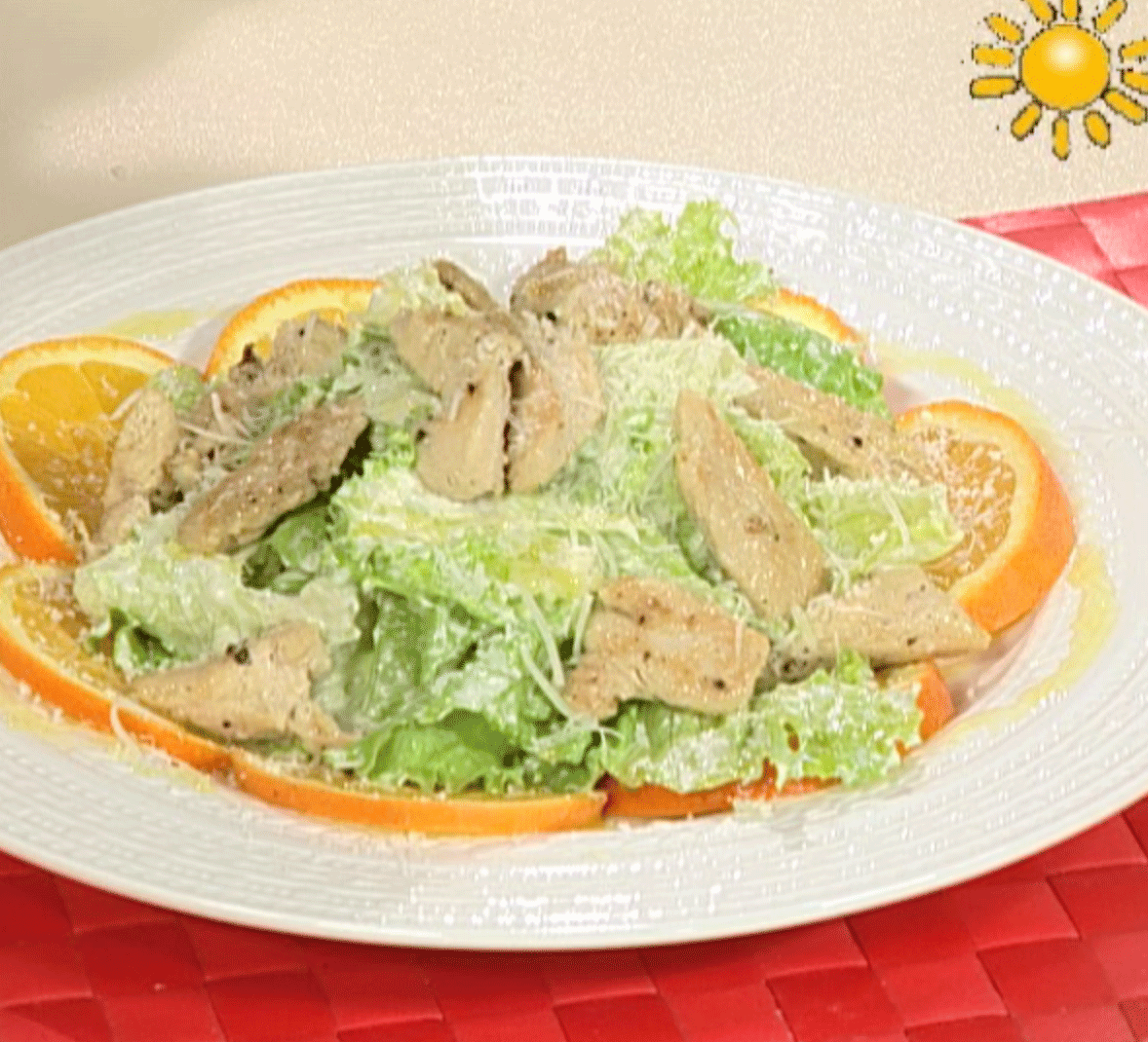 Zonja Tefta kishte përzgjedhur gjithashtu edhe një sallatë e cila ngjason me “Sallatën Çezar”, sigurisht e sjellë në mënyrën e saj.