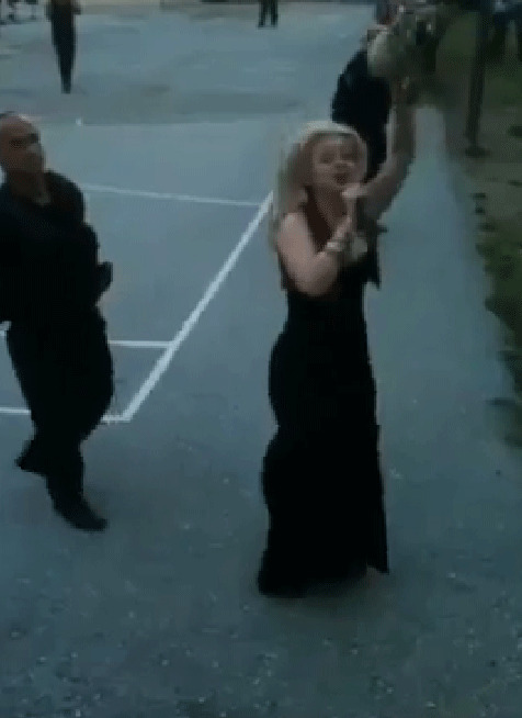 Si duket ajo nuk ka arritur të komandojë fustanin e gjatë dhe lëvizjet e tepruara në një vend jo shume të përshtatshëm siç ka qenë një kënd sportiv.