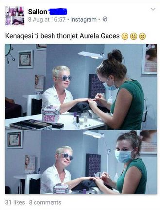 Në llogarinë e kësaj qendre estetike në Facebook, është postuar fotoja e një vajze të ngjashme me këngëtaren, e cila po bënte thonjtë. Fansat e Aurelës, duke e njohur mirë këtë të fundit dhe pamjen e fytyrës së saj, i kanë dërguar fotografinë në Facebook, ndërsa Gaçe i ka 'çjerrë maskën' në mënyrën më 'aureliane' të mundshme.