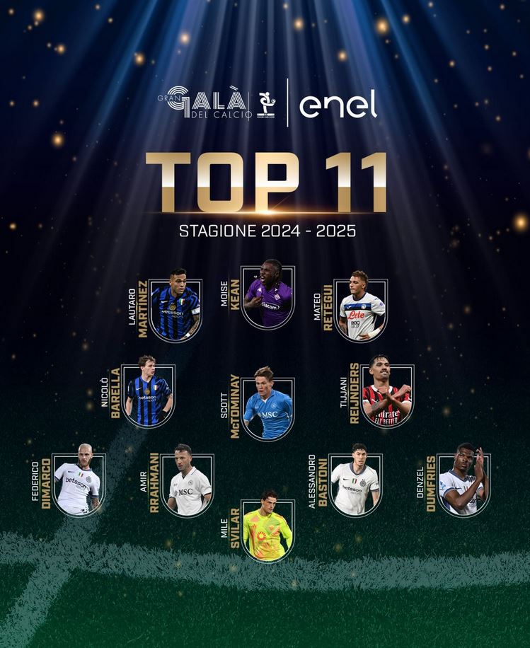 Mesfushori i Napolit, McTominay, fitoi çmimin kryesor si "Lojtari i Vitit" në Serie A. Në formacionin e vitit u përfshinë disa nga emrat më të mëdhenj të kampionatit italian, duke përfshirë Scott McTominay, Lautaro Martinez dhe Tijjani Reijnders. Napoli (kampion në fuqi) dhe Inter dominuan në përbërje, duke reflektuar garën e ngushtë për titull deri në fund të sezonit. Nga Inter dhe Napoli u përfshinë: Denzel Dumfries, Amir Rrahmani, Alessandro Bastoni, Federico Dimarco, McTominay, Nicolo Barella dhe Lautaro Martinez.