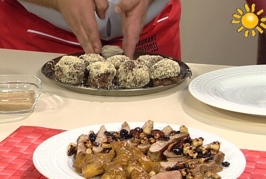 Dy recetat e paraqitura me shumë finesë nga kuzhinieri kosovar dhe zonjës Tefta erdhën për t`i shtuar menunë dhe shijen e ëmbël tryezës së madhe të festave.