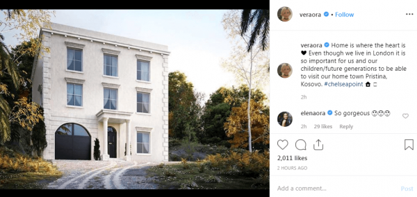 “Shtëpia është atje ku ndodhet zemra.Ndonëse jetojmë në Londër, është kaq e rëndësishme për ne dhe fëmijët tanë / brezat e ardhshëm që të mund të vizitojmë qytetin tonë në Prishtinë, Kosovë.”, ka shkruar Vera Ora në postimin e saj.