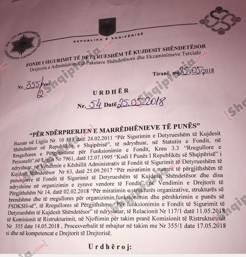 (Urdhri i FSDKSH për largimin e mjekëve nga puna)