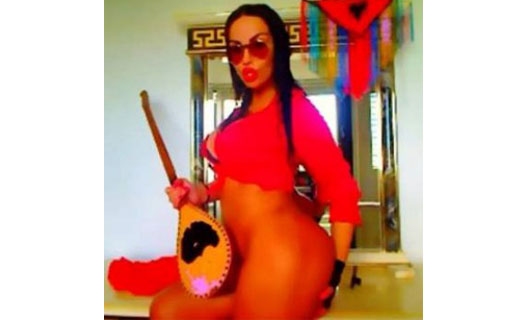 Fotomodelja e cila njihet për format e saj, ka postuar disa fotografi në rrjetet sociale, gjysëm nudo ku në dorë mban çiftelinë dhe me të mbulon pjesët intime të trupit të saj.