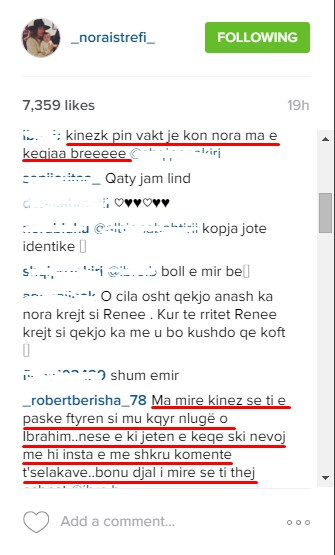 Shumë nga dashamirësit e Norës e mbështetën Robertin, por kishte dhe nga ato 'delet e zeza' që 'guxuan' ta kritikojnë dhe siç mund të mendohet, morën një përgjigje jo fort të pëlqyeshme si shuplakë fytyrës.