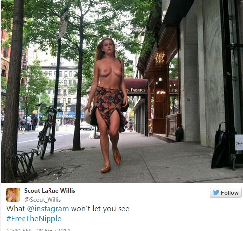 Scout Willis ka shokuar me daljen e saj publike në rrugët e New Yorkut, protestë të cilën e ka vazhduar edhe në Instagram, por fotoja është fshirë nga policia e Instagramit.