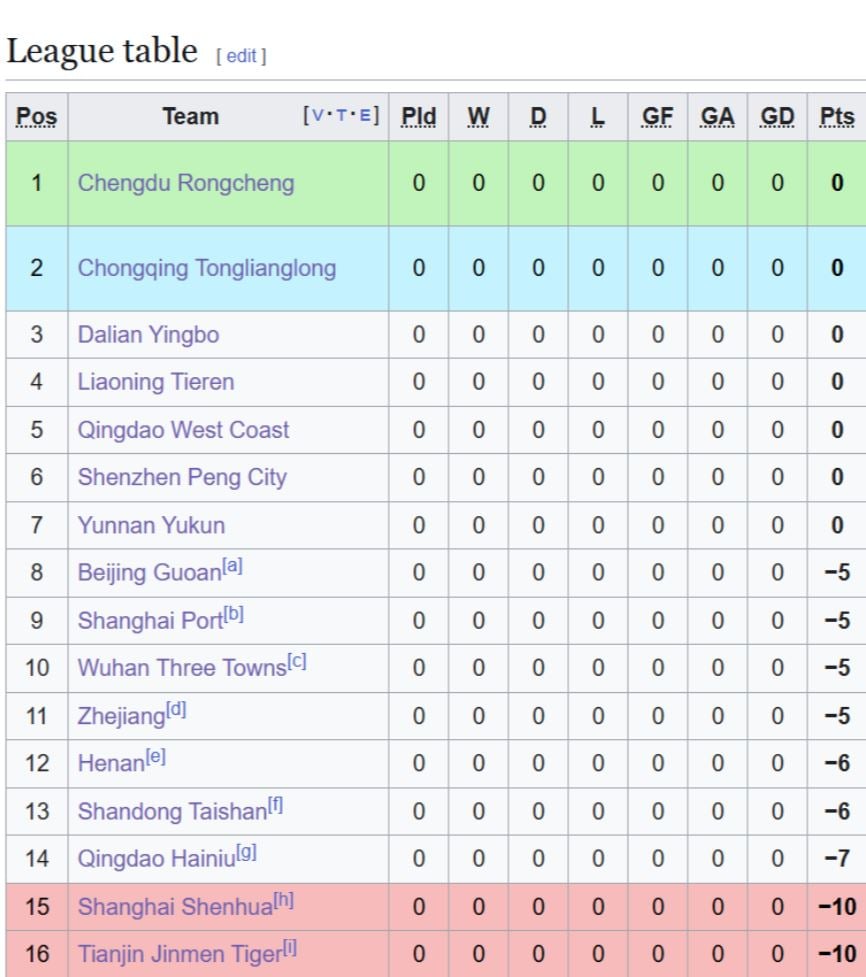 Ndër ekipet më të goditura janë Shanghai Shenhua dhe Tianjin Tigers, të cilat janë ndëshkuar me nga -10 pikë për shkak të përfshirjes në skandalin e basteve.
