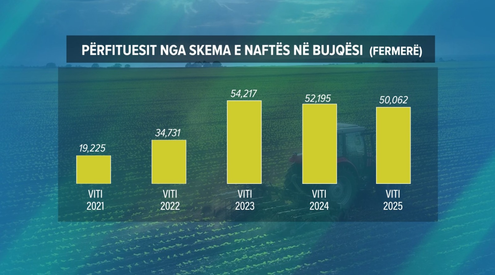 Numri maksimal i përfituesve nga nafta ka qenë 54 mijë në vitin 2024, ndërsa buxheti i shpenzuar për këtë skemë 5 vjeçare mbi 87 milionë euro.
