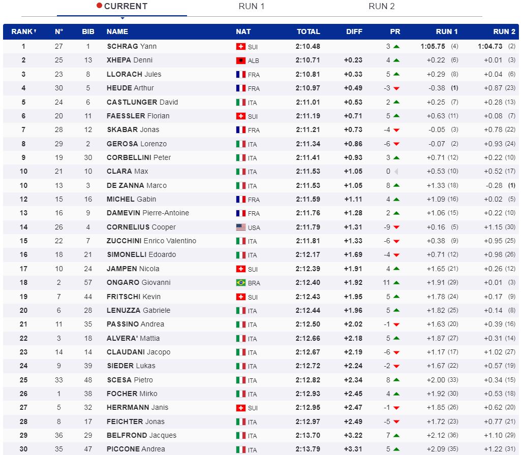 ITALI, Antagnod - Skiatori Denni Xhepa (22 vjeç) ka bërë një garë fantastike sot në Itali duke u renditur i dyti nga 108 konkurrentë, vetëm 23 të qindtat pas vendit të parë që u sigurua nga zvicerani Yann Schrag. Djaloshi që garon me flamurin shqiptar ka bërë një paraqitje për t'u lavdëruar pasi u ngjit në podium në disiplinën e Slalomit Gjigant në Skitë Alpine.