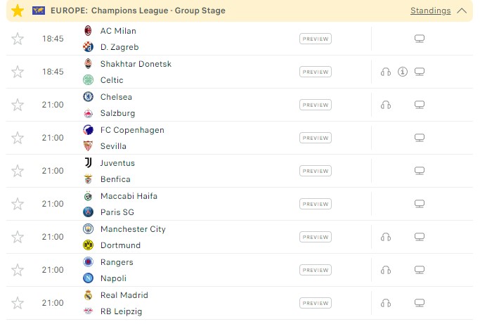 Të shumta janë ndeshjet dhe emocionet edhe mbrëmjen e sotme. Faza e grupeve të Champions League vazhdon. Tre skuadra italiane luajnë sot. Napoli shkon për të vizituar Rangers, me shpresën për t'i dhënë vazhdimësi suksesit të pastër 4-1 me të cilin asgjësoi Liverpool-in. Është e ndaluar të gabojnë Milan dhe Juventus, të angazhuar përkatësisht ndaj Dinamo Zagrebit dhe Benfikës.