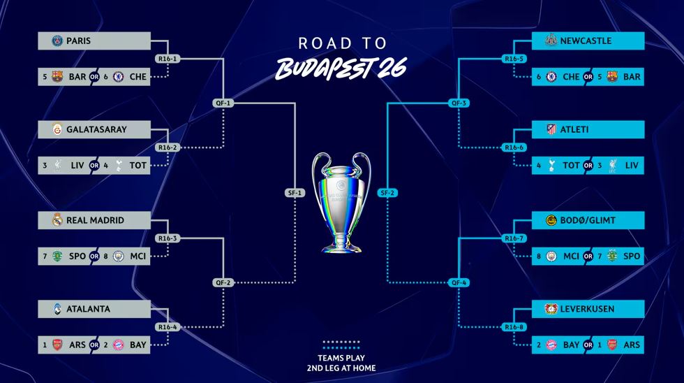 Në bazë të vendosjes së ekipeve drejt rrugës për në finale, PSG mund të përballet kundër Barcelonës ose Chelseat, ashtu si edhe Newcastle. Atletico Madrid do gjejë në short njërin mes Tottenhamit ose Liverpoolit, njësoj si Galatasaray.