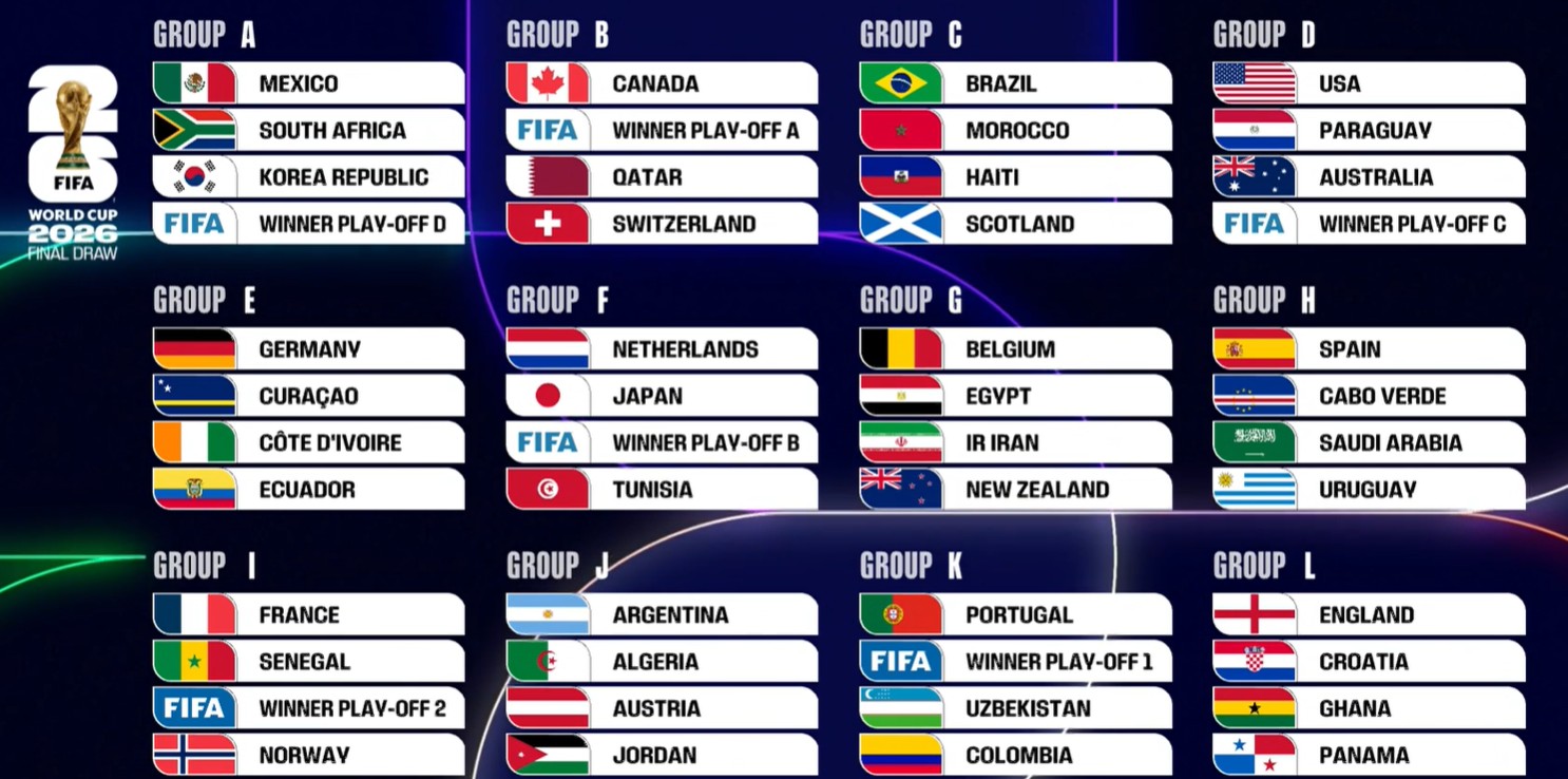 SHBA - Këtë të premte duke nisur nga ora 18:00 me kohën shqiptare, në Washington, u mbajt me madhështi ceremonia e shortit për grupet e Kupës së Botës 2026. Për herë të parë Botërori do ketë 48 kombëtare të ndara në 12 grupe me nga 4 skuadra, ndërsa po për herë të parë do mbahet në tre shtete dhe në 16 qytete.