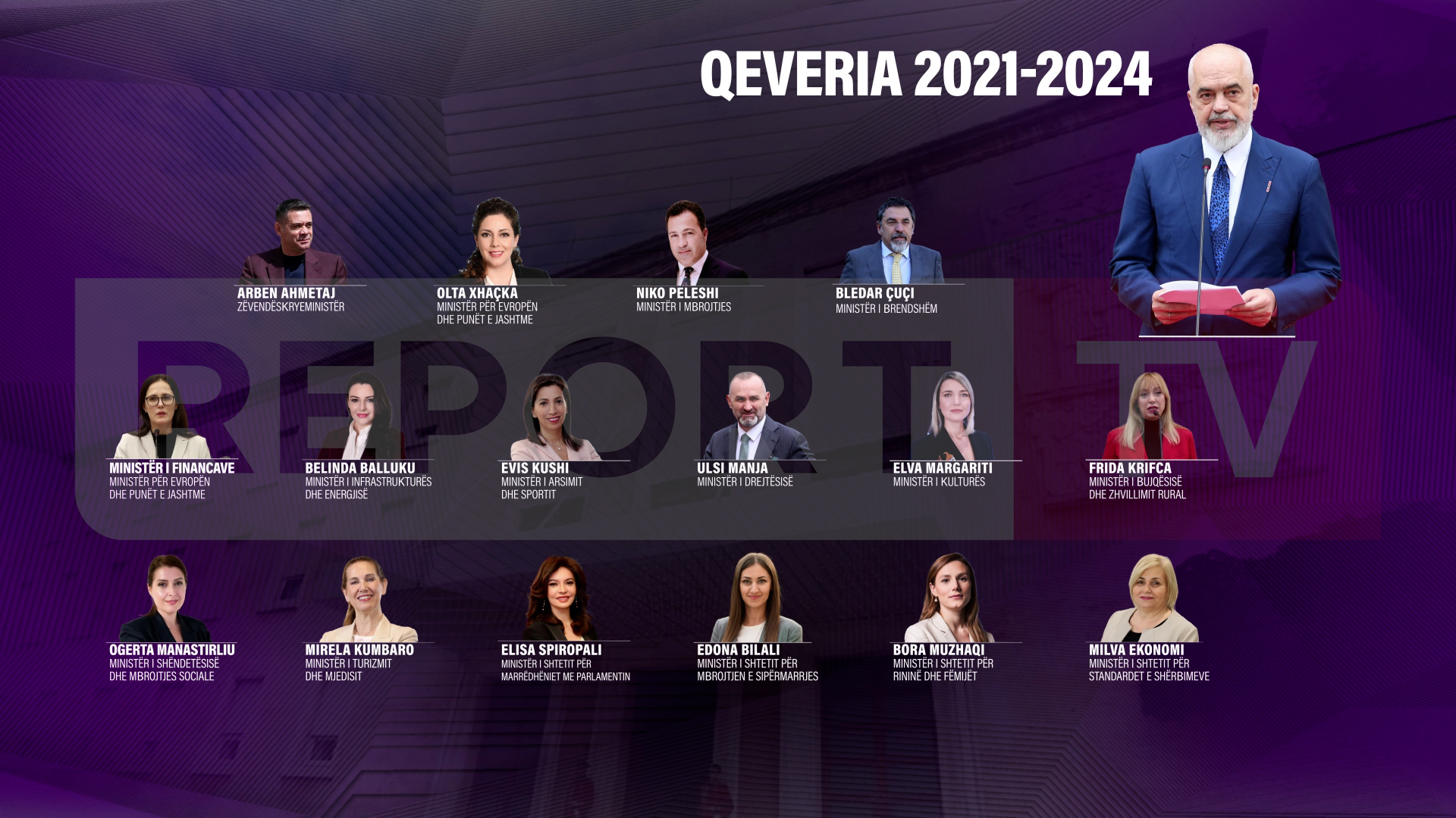 Qeveria e re me të cilën kryeministri Rama doli para shqiptarëve pas fitores së tretë radhazi në zgjedhje do të ketë pak ndryshime. (2 Shtator 2021) Në postet kyçe konfirmohen të njëjtat emra, ndërsa në krye të Financave vjen Delina Ibrahimaj. Te Drejtësia, Etilda Gjonaj i lë vendin Ulsi Manjës. Në total, nga 16 poste ministrore, 12 i janë besuar grave, raporton Shqiptarja.com dhe Report Tv.