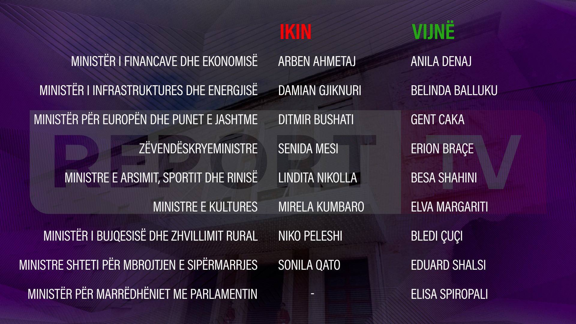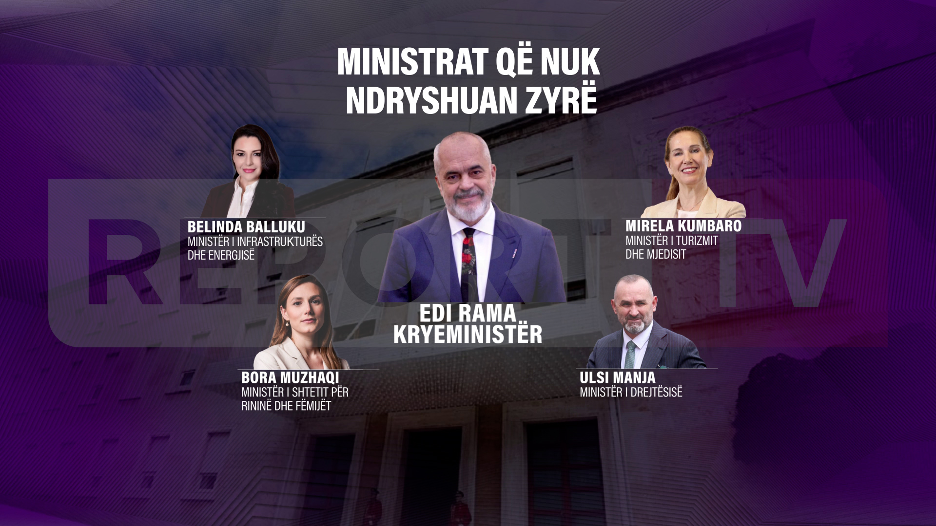 Vetëm 4 ministra rezultuan të “paprekshëm”, duke mbajtur të njëjtat zyra në të cilat hynë në shtatorin e 4 viteve më parë, raporton Shqiptarja.com dhe Report Tv..