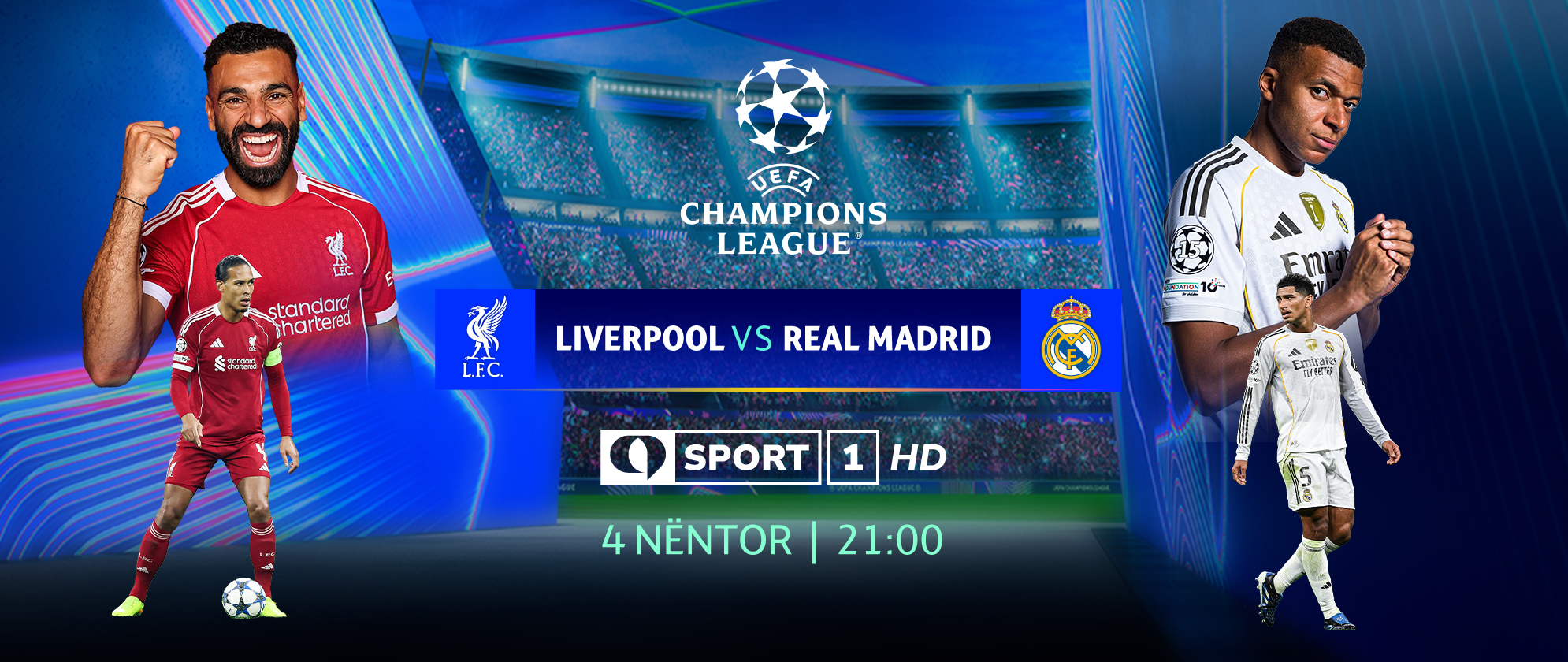 Në Tring Sport 1, të martën, një ndeshje për lavdinë dhe historinë, e cila përsëritet për asnjëherë nuk është njëlloj. Nga Anfield ku këndohet “You’ll Never Walk Alone”, në Madridin ku lindin legjendat evropiane, dy gjigantë, “Reds”-at anglezë dhe “Galaktikët” spanjollë përballen për një ëndërr të përbashkët, trofeun më të lakmuar të kontinentit, por edhe për spektakël dhe adrenalinë të pastër.