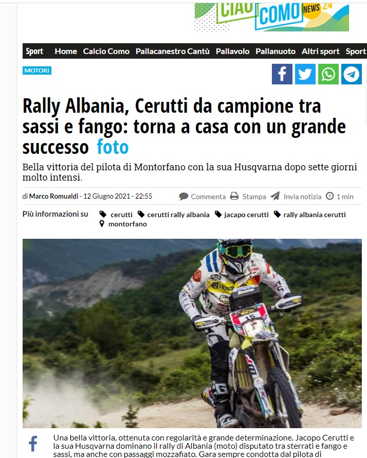 "Rally Albania" është tashmë një nga garat më interesante në vend, por duket se ky aktivitet i ka kaluar kufijtë. Mediat italiane kanë shkruar për këtë aktivitet, i cili është njëkohëssiht promovues i turizmit shqiptar.