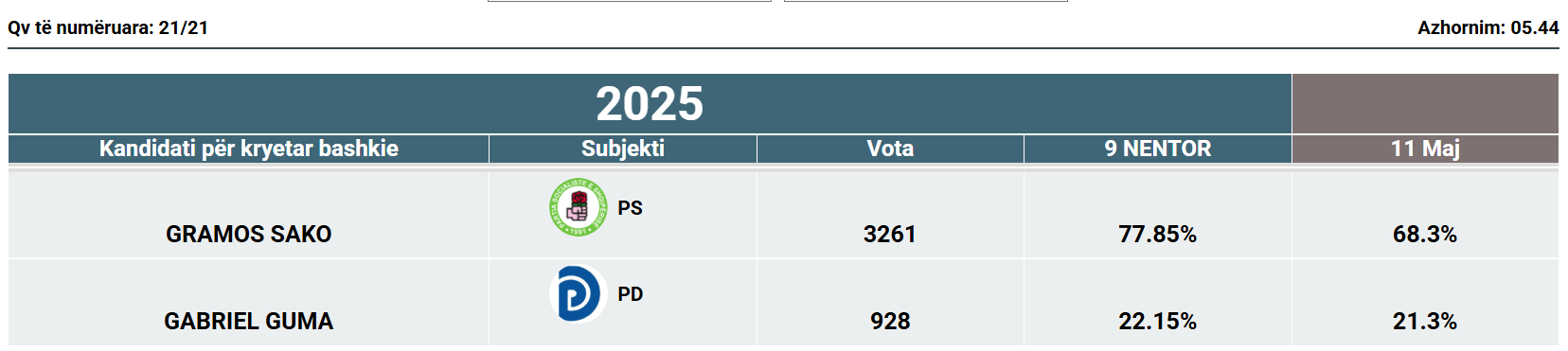 Nuk ka surpriza as në Bashkinë e Tepelenës. Rezultatet përfundimtare të KQZ tregojnë se PS me ish-ushtarakun Gramos Sako kanë fituar me 77.85% ose 3261 vota.