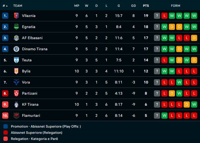 Tirana pëson humbjen e tretë radhazi dhe me vetëm gjashtë pikë mban vendin e parafundit në renditje. Nga ana tjetër Bylis gjen fitoren e dytë radhazi dhe ngjitet në kuotën e 12 pikëve për vendin e gjashtë momental.