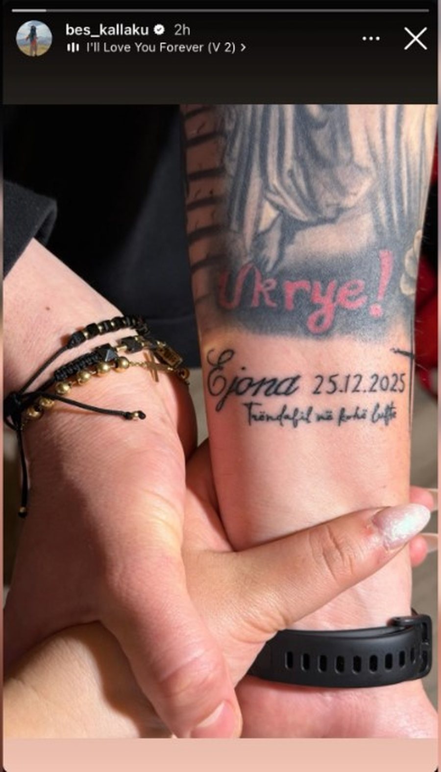 Kjo e fundit është përforcuar më shumë dhe nga shkrimi në dorën e tij “Trëndafil në kohë lufte” dhe data “25.12.2025", ndërsa fotoja shoqërohej me tingujt e këngës “I’ll love you forever”.