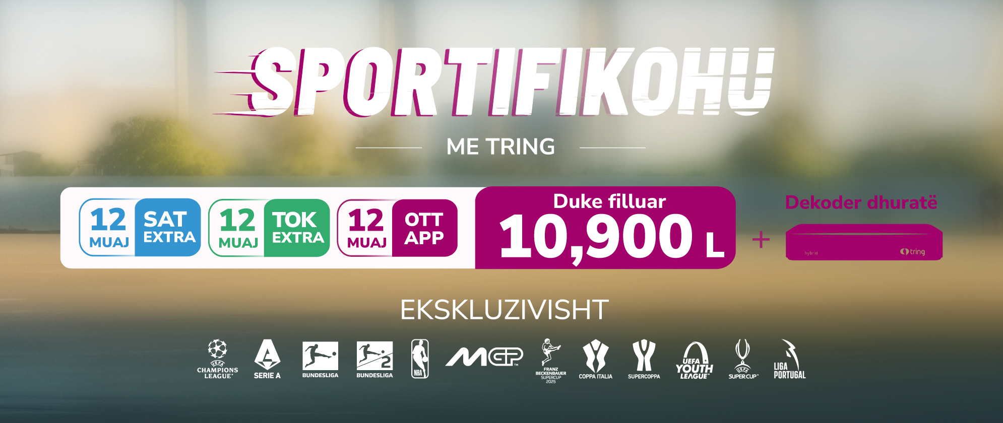Champions League, Serie A dhe Bundesliga, për herë të parë 3 ligat më të dashura për tifozët shqiptarë brenda një pakete të vetme, të cilat së bashku me NBA, Moto Gp, Superligën Portugeze, Kupën e Superkupën e Italisë, Bundesliga 2 dhe Superkupën Gjermane dhurojnë spektakël përgjatë gjithë sezonit, ndeshje pas ndeshje, javë pas jave.