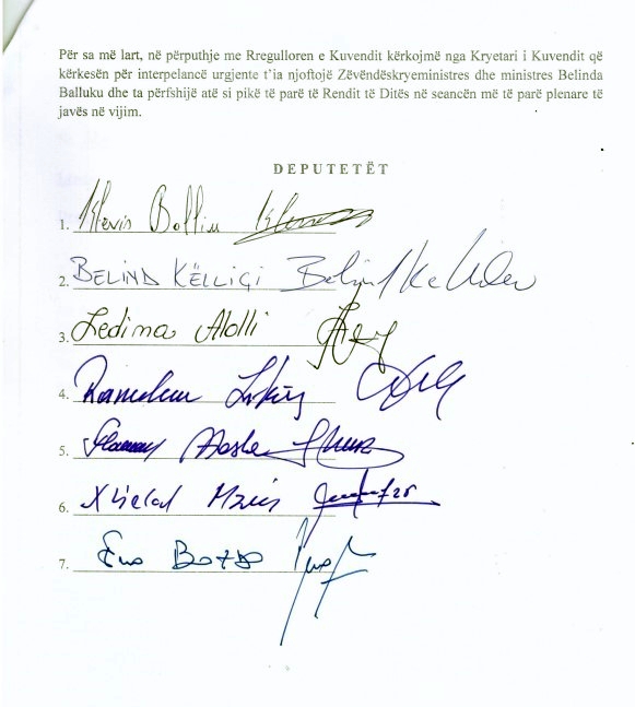 Në këto kushte, me qëllim dhënien e shpjegimeve dhe informacioneve lidhur me sa më lart, në mbështetje të nenit 80, pika 1, të Kushtetutës së Shqipërisë dhe nenit 97, pika 1, të Rregullores së Kuvendit, kërkojmë thirrjen e një interpelance urgjente me Zëvëndëskryeministren dhe Ministren e Infrastrukturës dhe Energjisë, Belinda Balluku” – thuhet në kërkesën e depozituar nga deputetët e PD.