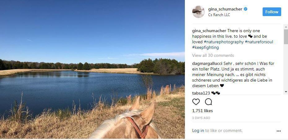 Këtë mesazh ajo e shoqëroi me një pamje të qetë nga një liqen. Pas këtij postimi të saj, të shumta kanë qenë komentet e bëra në favor të Schumacher nga fansat e tij, duke i uruar shërim të shpejtë.