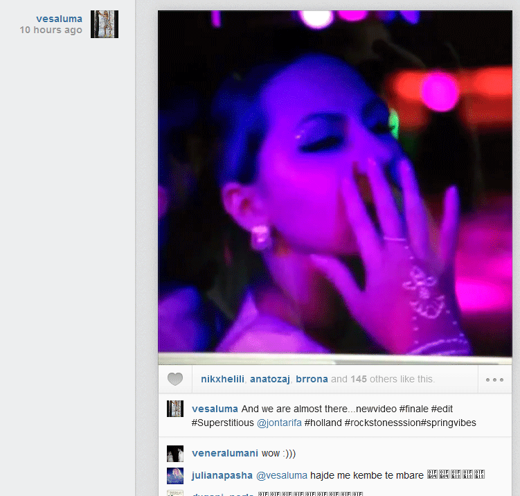 Vesa ka postuar një video në “Instagram” ku shfaqet duke kënduar ndërkohë që dora e saj është e mbushur me perla.