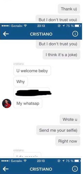 Gjatë bashkë bisedimit bukuroshja i dërgon foto ndërkohë që Ronaldo i jep edhe numrin e Whatsappit.
