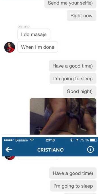 Gjatë bashkë bisedimit bukuroshja i dërgon foto ndërkohë që Ronaldo i jep edhe numrin e Whatsappit.
