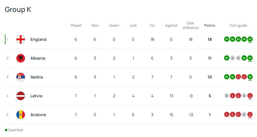 Sfida e nesërme mund të jetë më deçizivja për tanët, pasi një fitore e Shqipërisë në Andorra, kombinuar me një humbje të Serbisë në Angli, do bënte që ekipi ynë zyrtarisht të merrte vendin e dytë në grup dhe të garonte në play-off e Kupës së Botës 2026, turne që zhvillohet verën që vjen në Amerikën e Veriut.