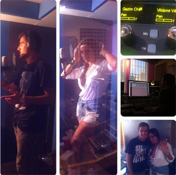 Ajo shfaqet në një studio regjistrimi së bashku me këngëtarin kosovar Gëzim Gashi.