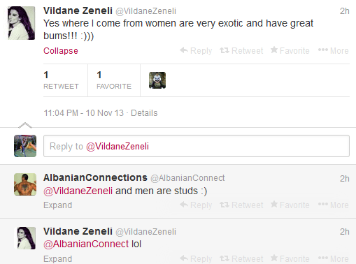 Vildane ka shkruar në Twitter: - “Andej nga vij unë femrat janë mjaft ekzotike dhe kanë të pasme të bukura”.