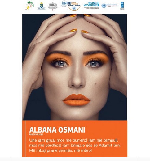 (Në foto Albana Osmani në fushatën e ndërgjegjësimit kundër dhunës ndaj gruas)