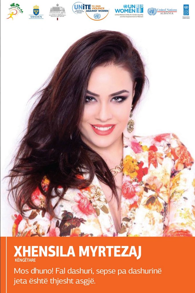 (Në foto Xhensila Myrtezaj në fushatën e ndërgjegjësimit kundër dhunës ndaj gruas)