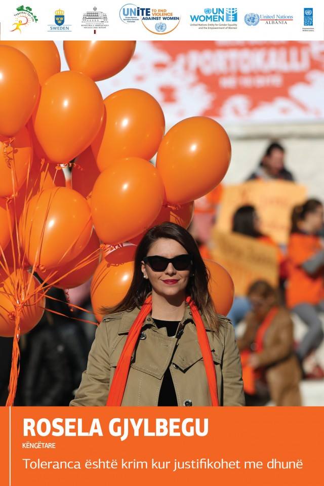 (Në foto Rosela Gjylbegu në fushatën e ndërgjegjësimit kundër dhunës ndaj gruas)
