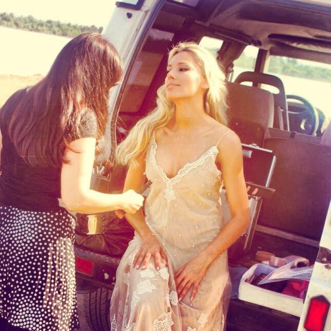Në diçiturën e fotove Ledina ka shkruar se ka nisur xhirimet e klipit dhe ka gjetur rastin për të falenderuar edhe parukieren e saj.