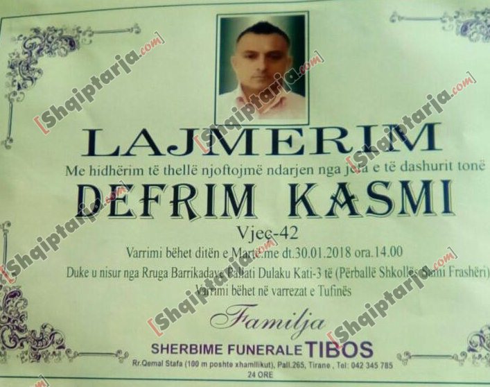 (Lajmërimi i vdekjes së Devi alias Defrim Kasmi 42-vjeç)