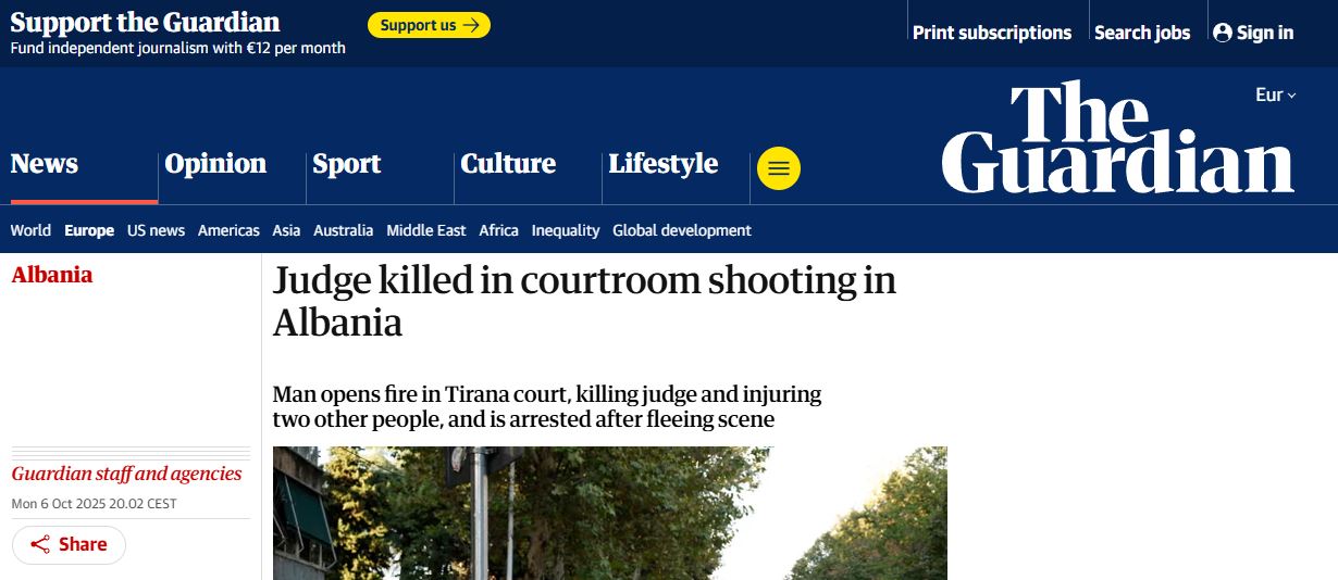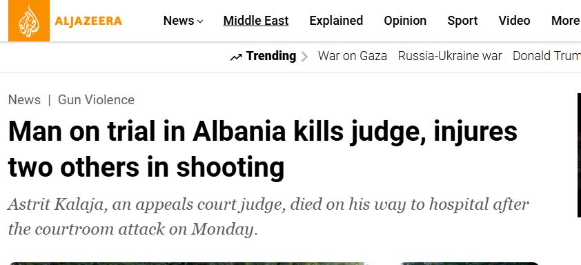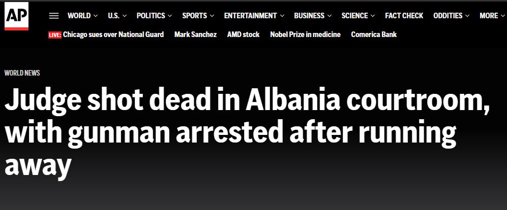 “Gjyqtari u vra me armë zjarri në sallën e gjyqit në Shqipëri, ndërsa autori u arrestua pasi tentoi të arratisej”,- është titulli i medias ndërkombëtare Asocciated Press.