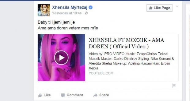 Përse është fshirë video?!!! Këtë pyetje kanë ngritur ndjekësit e këngëtares së muzikës Pop Xhensila Myrtezaj e cila kish publikuar në faqen zyrtare në Facebook hitin e saj më të fundit “Ama dorën”…