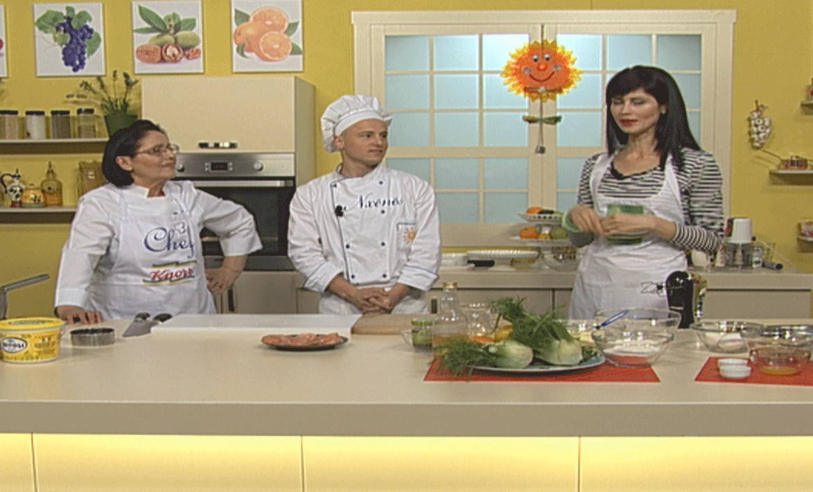 Edhe ditën e sotme nxënësi i shkollës së mesme të Hoteleri-Turizmit, Erjon Bardhi ka ndjekur me vëmendje këshillat e zonjës Tefta gjatë përgatitjes së recetave të ditës.