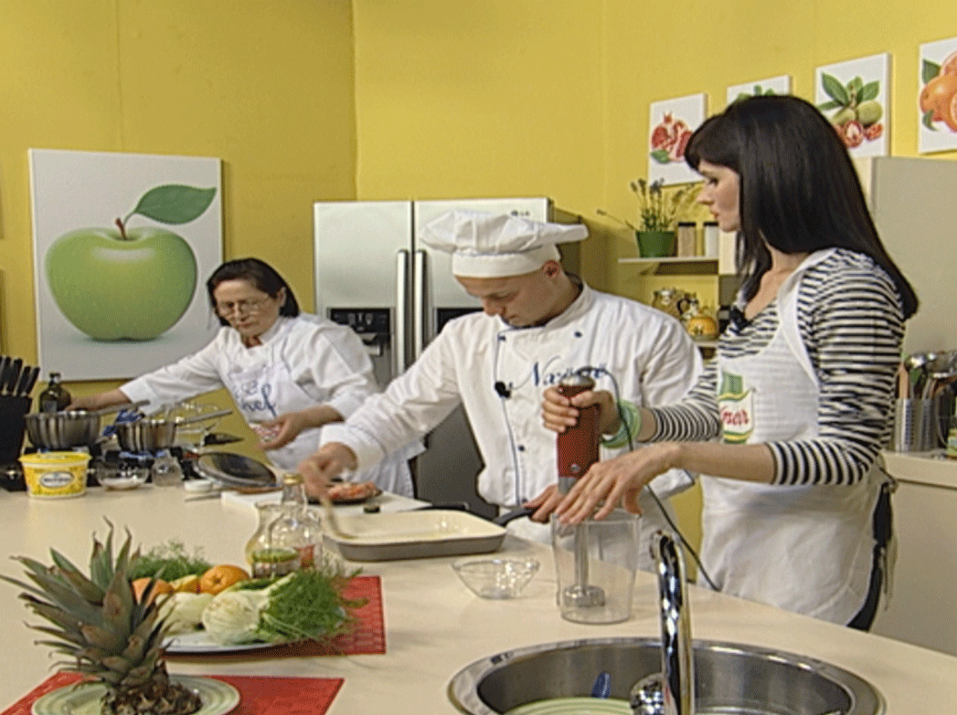 Nuk kanë munguar recetat e shijshme të sjella me mjeshtëri dhe fantazi nga zonja Tefta, të cilat kanë qenë “Kek me ananas” dhe Salmon me salcë portokalli”.