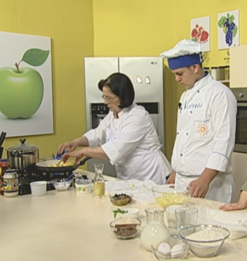 Një ditë para provës së javës, nxënësi Hagelt Goxhaj ka vëzhguar përsëri Zonjën Tefta në gatim. “Pjeshkë e pjekur me fruta të thata” dhe “Biftek viçi me krem dhe spinaq” kanë qenë recetat e përzgjedhura për ditën e sotme në emisionin Rreze Dielli. Zonja Tefta ka përgatitur me fantazi dy pjata të shijshme dhe praktike për të gjitha amvisat që ndjekin këtë rubrikë të përditshme.